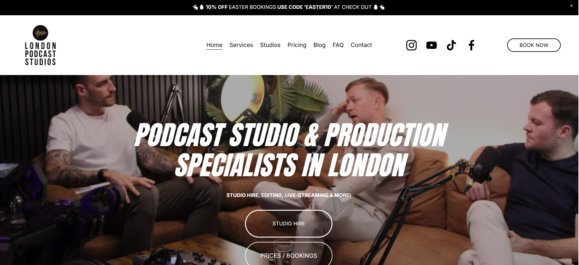 This East London studio offers budget-friendly and flexible podcast recording solutions. It provides sound-treated rooms, professional microphones, and basic video support. Suitable for small teams and startups looking for professional-quality audio without a high cost. Perfect for independent creators starting their podcast journey.