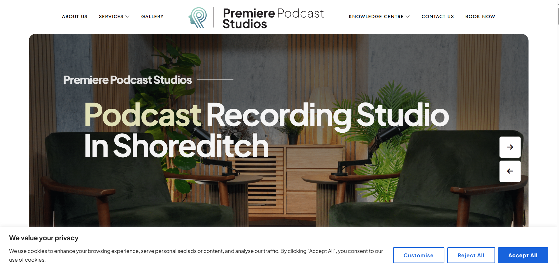 Premiere Podcast Studios in Shoreditch is a high-end recording facility designed for cinematic podcast production. The studio offers 4K video recording, professional microphones, and acoustically treated rooms. It supports both solo and panel podcasts with full post-production. Ideal for creators seeking a premium, polished output for audio and video content.