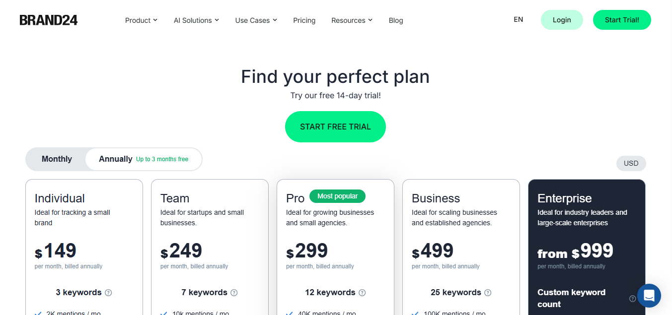 Brandwatch – Enterprise-level tool with advanced social listening and analytics; pricing on request.