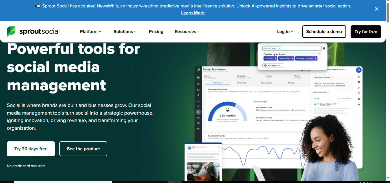 Sprout Social – Starts at $249/month, includes detailed analytics, competitor reports, and team collaboration.
