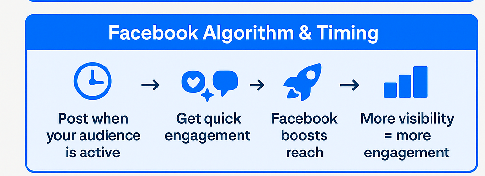 In short, the Facebook algorithm rewards content that is fresh, relevant, and quickly engaged with. Posting at the right time helps you meet those conditions, which can improve reach without increasing ad spend.