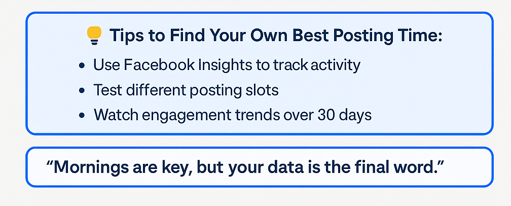 Finding the best time to post on Facebook is about more than just following a universal chart—it’s about knowing your audience and adapting to their habits. While global averages give you a great starting point, the real results come from tracking your own performance, testing different posting times, and refining your strategy over time.