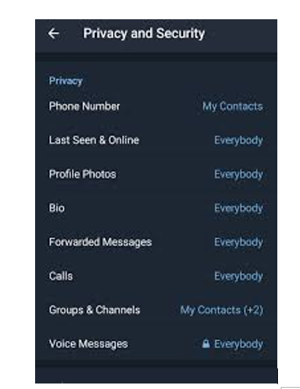 - Under Phone Number and Profile Photos, set visibility to Nobody.