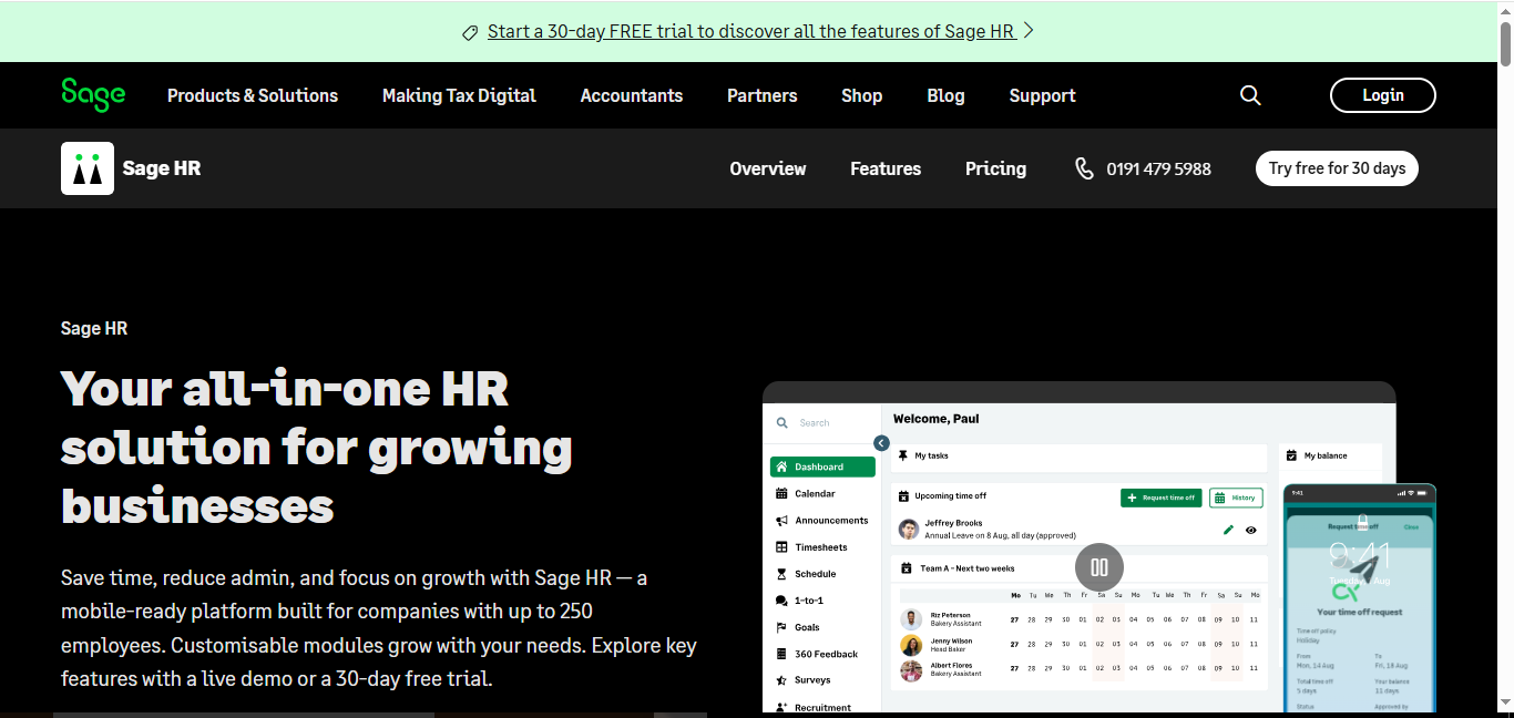 Sage HR is a practical, budget‑friendly HR solution for small to medium businesses that need core HR functions, leave and attendance tracking, and basic performance or document management — all with a usable mobile app. It may not satisfy large enterprises needing deep customisation or complex global payroll, but for growing teams wanting simplicity, flexibility, and remote‑friendly HR management, Sage HR is a very good choice.