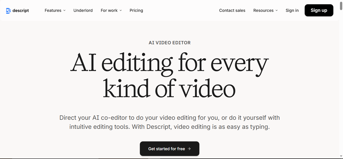 Descript is an excellent choice for content creators who need a powerful, all-in-one audio and video editing solution. Its AI-enhanced audio tools make producing professional-quality content fast and efficient, while transcription-based editing simplifies workflow, making it ideal for podcasters, marketers, and video creators.