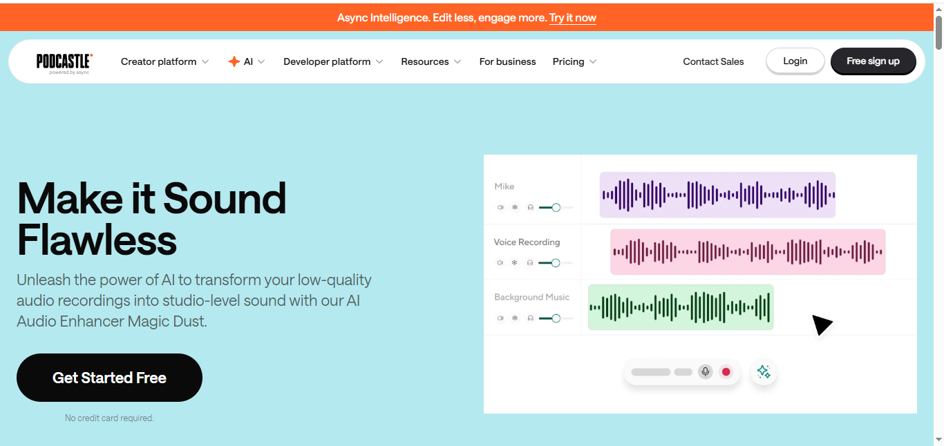 Podcastle is an AI-powered audio and video creation platform designed to enhance recordings effortlessly. Its standout feature, Magic Dust, uses AI to remove background noise, equalize audio levels, and improve vocal quality, producing studio-quality sound regardless of the recording environment. This makes it an ideal tool for podcasters, content creators, and storytellers who want professional results without expensive equipment or a technical team.