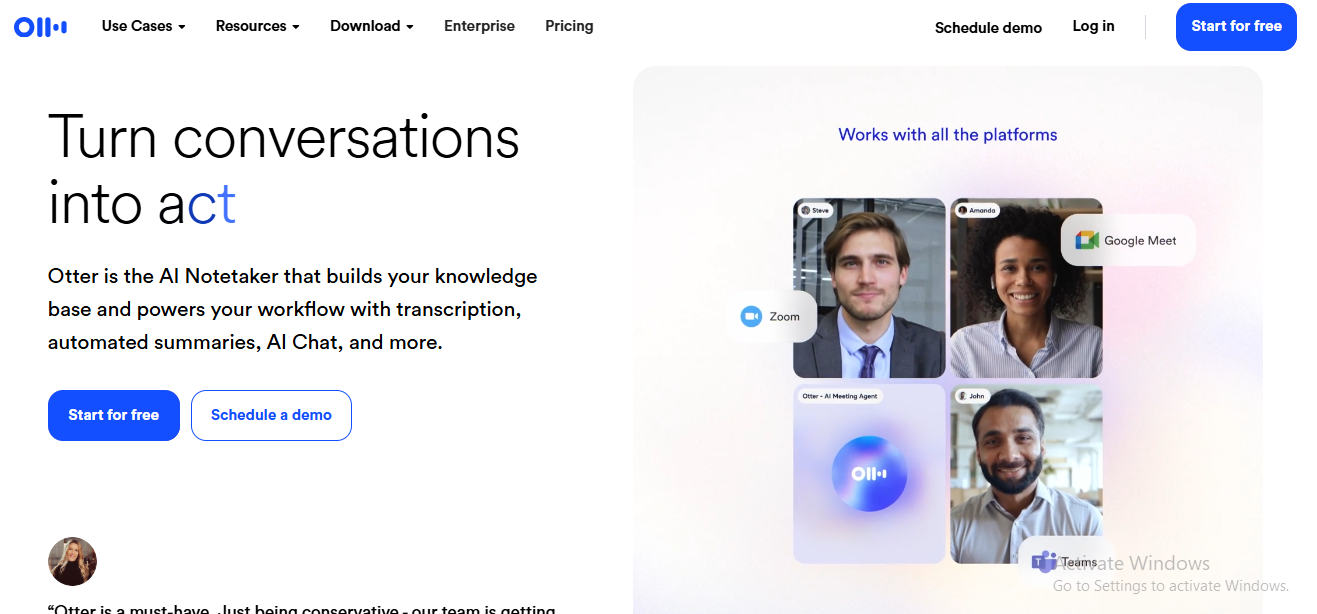 Otter is a widely used AI transcription service designed to capture and transcribe voice conversations in real time. Available on desktop, Android, and iOS, Otter allows users to transcribe meetings, interviews, and discussions from virtually any device. The platform offers multiple plans with feature sets tailored to different professional and team-based workflows.