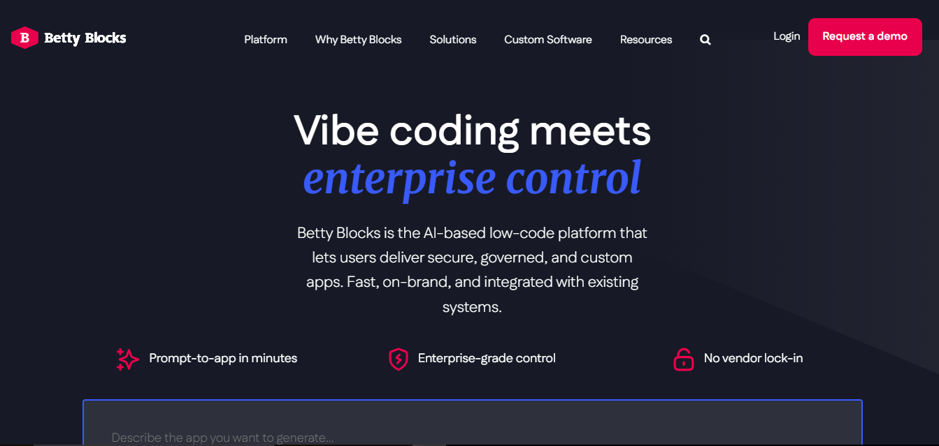 Betty Blocks is an enterprise-grade no/low-code platform for building secure, scalable business apps and portals. Designed for governed citizen development, it also offers escape hatches for professional developers. Betty Blocks excels in back-office systems and client-facing portals, especially within regulated industries.