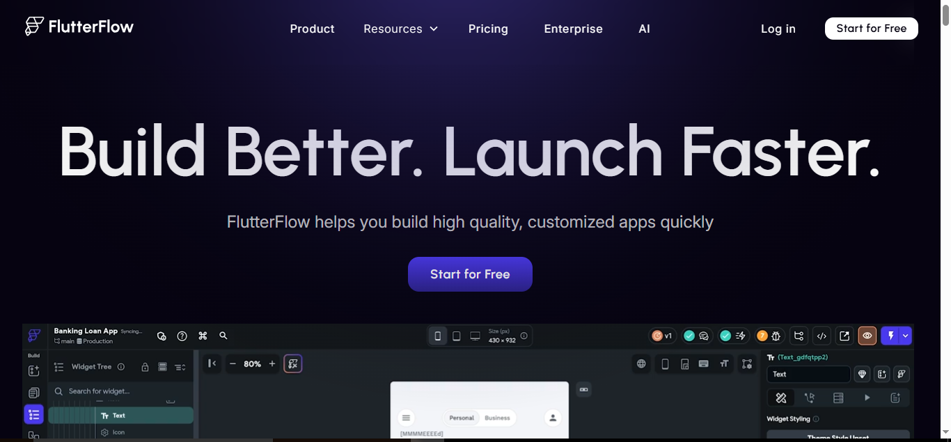 FlutterFlow is a low-code platform for building native mobile, web, and desktop apps using Flutter. It combines visual development with full code access, making it ideal for teams that want speed plus the ability to customize with code, all while maintaining native performance.