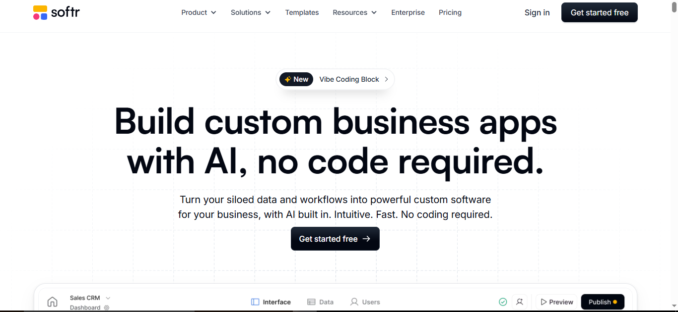 - Pro plan from $139/month (annual): Unlimited apps and removal of Softr branding