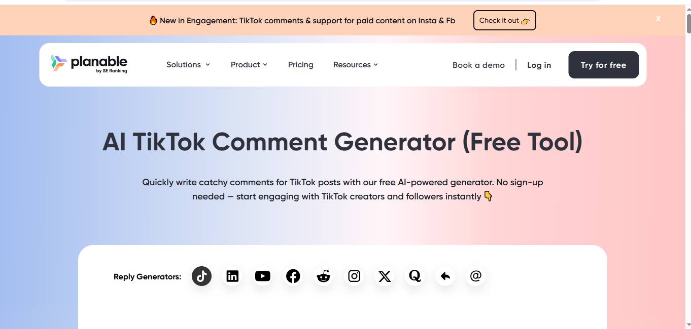- Planable AI TikTok Comment Generator – Best for AI-driven, creative, and context-aware comments