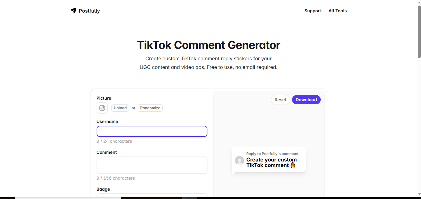 - Postfully TikTok Comment Generator – Best for visual comment stickers and mockups