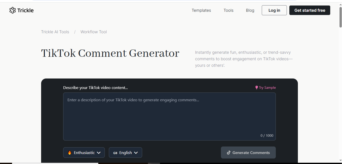 Trickle TikTok Comment Generator is ideal for creators and businesses looking to enhance engagement with lively and context-aware comments. Its fast, user-friendly interface and multiple tone options make it a great choice for maintaining active interactions on TikTok.
